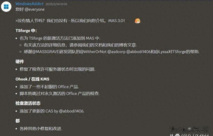 这技术一出,整个激活圈都炸了。以前那些收费的KMS工具、伪装服务器的激活方式,全都被碾压了。人家是真让你“合法”激活,而不是绕过。而且作者明确说了,TSForge不是为了鼓励盗版,而是暴露微软DRM设计上的惰性——二十年没改的核心机制,一旦被突破就是全线崩盘。