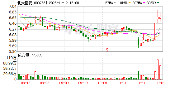 截至11月12日收盘,北大医药报6.68元/股,市值为39.81亿元。
