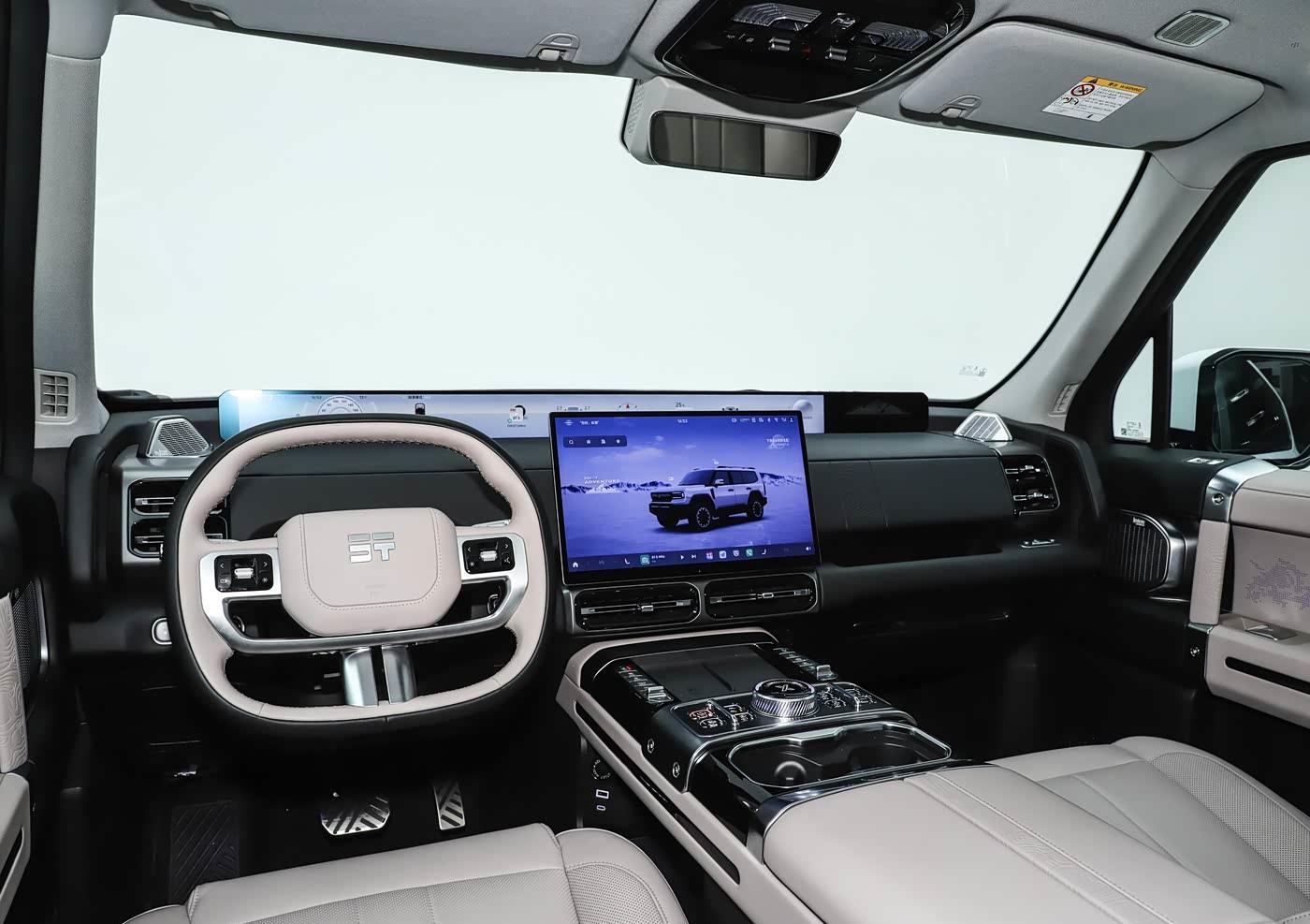 内饰部分和普通版基本一致,悬浮式的远端屏很抢眼,方向盘是全新的三幅式设计,带有大面积镀铬装饰,盘幅为双色皮质包裹。副中控台上提供了大量的实体按键,有着不错的便利性。